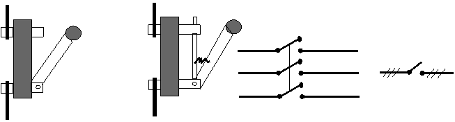 La intreruptoarele pachet contactele mobile sunt in forma de I si inchid sau deschid simultan câte un circuit. Ele au 2 pozitii : INCHIS - DESCHIS.