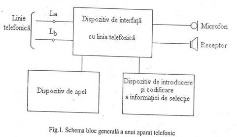 - Schema bloc generala a unui aparat telefonic capabil sa îndeplineasca aceste functiuni este