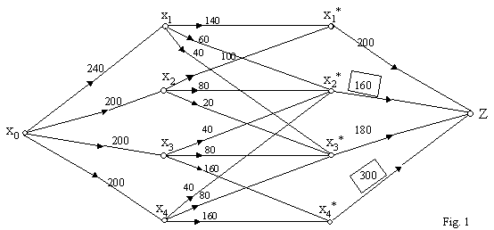 Facând abstractie de costurile afectate transportului si de distantele dintre centre, pentru rezolvarea problemei trebuie sa determinam fluxul maxim ce strabate reteaua de la intrarea x0 pâna la iesirea Z.