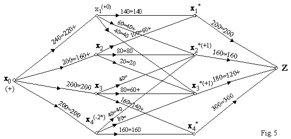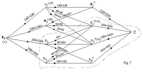 Pe acest graf, repetând procedeul de marcare, am fost condusi din nou la marcarea vârfului Z, pe traseul (x0, x1, x2*, x4, x3*, Z), prezentat în figura 6 si ca atare fluxul este susceptibil de o noua îmbunatatire.