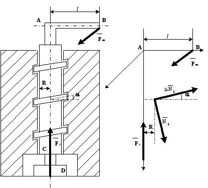 În Figura 8.4 este reprezentat un surub de raza R cu unghiul