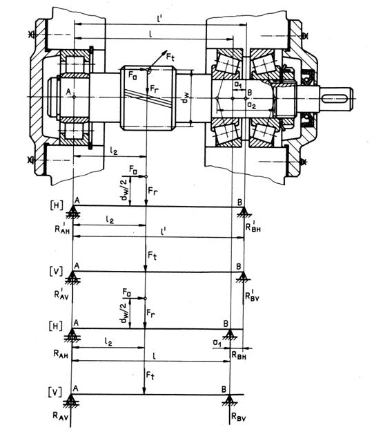 Fig. 5.16 Schita subansamblului arborilor de intrare si intermediar ai unui reductor cilindric cu doua trepte |