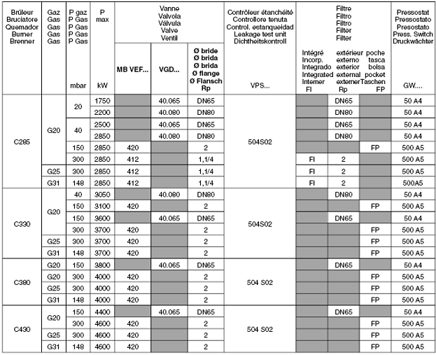 Ele utilizeaza toate tipurile de gaz mentionate in tabelul de mai jos, sub rezerva unui reglaj apropiat de valorile indicate in functie de presiunile disponibile tinand seama de variatiile puterii calorifice (Hi) a acestor tipuri de gaz.