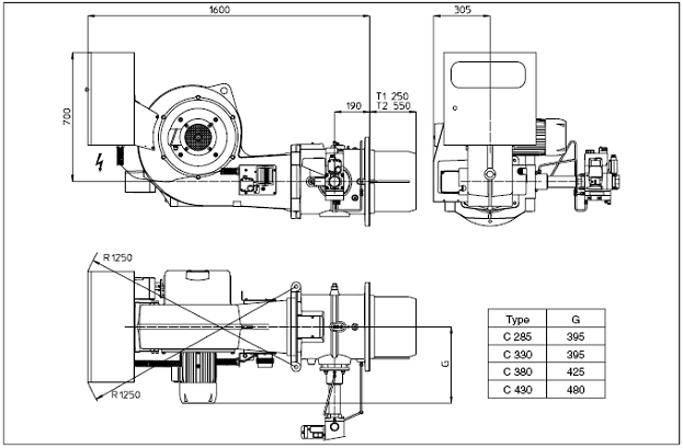 Se va respecta distanta minima de 1,2 m de fiecare parte a arzatorului pentru a permite efectuarea operatiilor de intretinere.