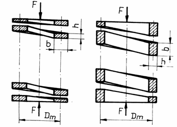 Arcurile disc sunt formate din una sau mai multe placi inelare, de forma tronconica, fiind supuse la sarcini axiale de compresiune. Elementele geometrice ale arcului disc, prezentate în fig. 5.22, a, sunt: