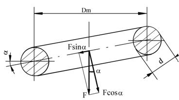 Fig. 5.6 Fcosa - perpendiculara pe planul spirei - determina solicitarile de torsiune (data