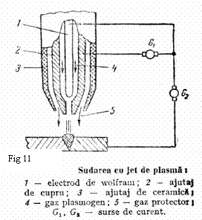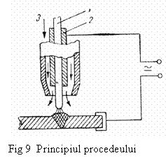 Īn acest caz arcul electric este amorsat īntre 2 electrozi nefuzibili sau īntre un electrod nefuzibil si piesa de sudat (fig 9), cu sau fara material de adaos.