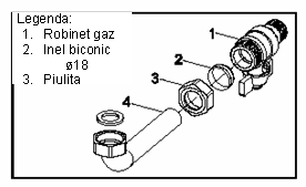 Se urmareste daca montarea robinetului de gaz a fost realizata corect, urmand secventele de montaj ilustrate in figura.