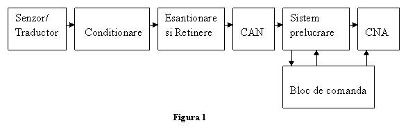 Blocul de esantionare si retinere si convertorul analog numeric preiau semnalul in forma continua si dau la iesire o serie de valori numerice ce vor fi procesate de sistemul de prelucrare. Deci, in intervale egale de timp, se masoara valoarea functiei continue. Acest interval de timp se numeste timp de esantionare (sampling time). Valoarea reciproca se numeste viteza de esantionare (sampling rate). Valoarea momentana (instantanee) se numeste esantion. Pentru a nu pierde nici o informatie importanta, conform teoremei lui Nyquist, este strict necesar ca viteza de esantionare sa fie cel putin de doua ori mai mare decat cea mai mare viteza de schimbare a semnalului. Daca aceasta viteza nu e destul de mare, rezultatele nu vor fi exacte iar functia reconstituita din esantioane va fi alta.