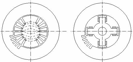 Fig.1. Sectiune transversala prin masina sincrona: a - cu poli înecati (plini); b - cu poli aparenti.
