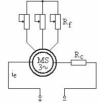 Dupa ce viteza a ajuns aproape de cea sincrona (s ), se deconecteaza rezistenta Rp si se leaga circuitul de excitatie la bornele sursei de c.c. (redresor comandat cu tiristoare).