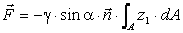 Forta de presiune ce actioneaza asupra peretelui plan este egala în modul cu greutatea cilindrului de apa ce are ca baza suprafata A iar ca înaltime distanta de la centrul de greutate al acestei suprafete la planul plutirii atmosferice.