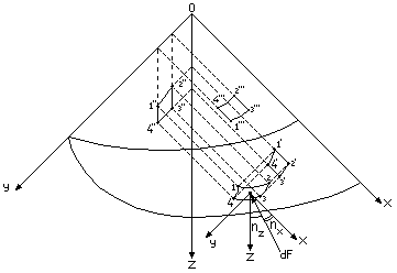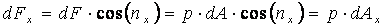 face normala la elementul dA respectiv cu axele x, z, y, forta