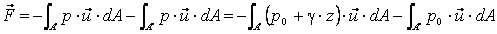 Aceste integrale se pot calcula cunoscând ecuatia de repaus absolut sau relativ a presiunii si implicit repartitia presiunii p în fluid precum si ecuatia suprafetei A. În cele ce urmeaza se trateaza numai cazul repausului absolut.