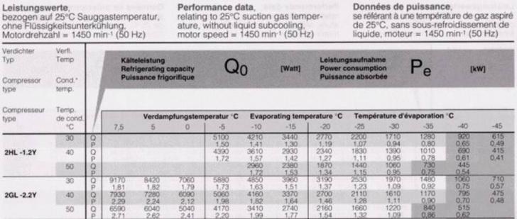 Cateva exemple de parametri indicati in cataloage pentru compresoare, sunt prezentate in urmatoarele trei imagini: