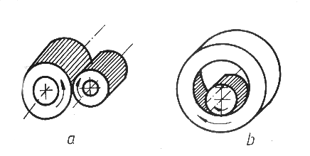 Fig.7.1. Diferite tipuri de angrenaje: a) cilindric exterior; b) cilindric interior