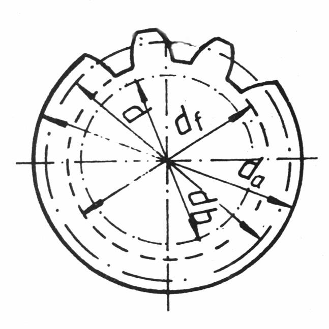 - cercul de picior, de diametrul df , este cercul care limiteaza fundul sau piciorul dintelui;