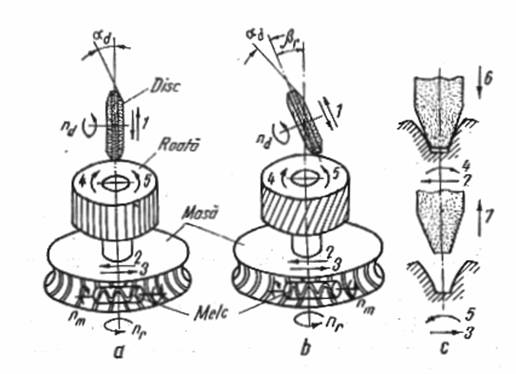 rectificarea la 0o (fig. 7.5.b) , adica cu discurile abrazive asezate in pozitie verticala.