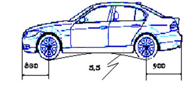 Consola fata, l1, reprezinta distanta dintre doua plane verticale transversale, care trec, respectiv, prin punctul extrem din fata al automobilului si axa puntii fata, deci l1 =860 [mm]. Consola spate l2, reprezinta distanta dintre doua plane verticale transversale, care trec, respectiv, prin punctul extrem din spate al automobilului si axa puntii spate, deci l2 =900 [mm].