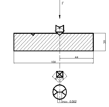 În figura 21 este prezentata metoda Vickers pentru controlul duritatii la placa activa. În urma încercarii s-a determinat valoarea diagonalei patratului de baza al piramidei . Determinarea ei s-a facut cu ajutorul microscopului optic.