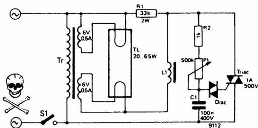 zgomotul produs de triac este atenuat de inductivitatea mare a bobinei L 1.