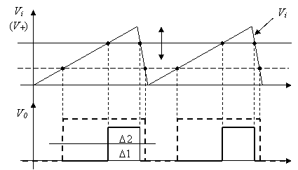 vom avea la iesire ≈ -E si bascularea se va produce cand V1 scade la valoarea ![]()
