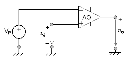 unde vi este tensiunea din nodul la care este conectata intrarea inversoare a AO-ului, pana la masa, iar vi este tensiunea din nodul la care este conectata intrarea neinversoare a AO-ului, pana la masa.