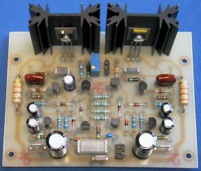 Le circuit imprimé est très compact, et se compose de deux sous-ensembles : l'étage de commande et l'étage de sortie. Les résistances sont toutes des 1/4 de watt 1 % métalfilm (sauf mention contraire).