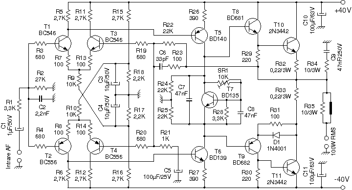 observat, structura acestui amplificator este aproape simetrica, cu exceptia