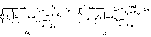 Transfer ideal al semnalului de la generator: (a) de curent, (b) de tensiune,