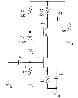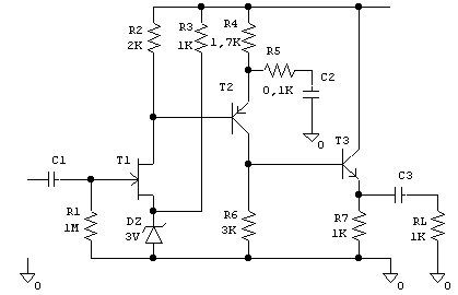 Pentru circuitul din figura tranzistorul T1 are IDSS = 8mA, Up =-6V, gm1=4mA/V tranzistorul T2,T3 are uBE=0,6V, b , gm2,3=40mA/V, rb`e2,3=5Kohm iar dioda Zener are UZo = 3V si rDZ = 0ohm , rdz =0 ohm .
