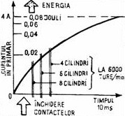 Fig.2: Energia pusa in joc in circuitul clasic de aprindere si curentul prin primarul bobinei.