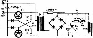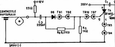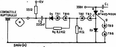 Rolul releului este indeplinit aici de un tiristor de tensiune inalta (400V -