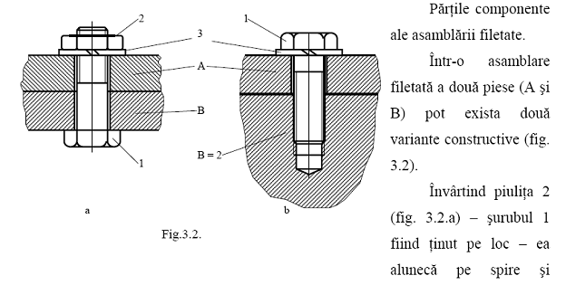 surubului în gaura filetata, executata în una din piese (B), care ia rolul piulitei.
