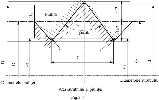 Caracteristicile geometrice ale filetului (fig. 3.4)