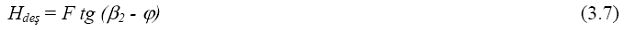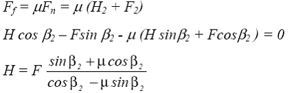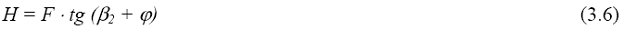 Înlocuind coeficientul de frecare cu unghiul de frecare în relatia (3.5) se obtine expresia fortei H, necesara pentru împingerea corpului pe planul înclinat sau altfel spus, pentru deplasarea piulitei pe surub