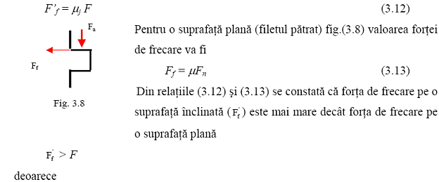 Daca miscarea se face cu frecare, la însurubare apare o forta de frecare Ff care se opune miscarii