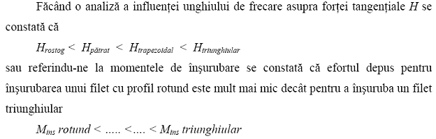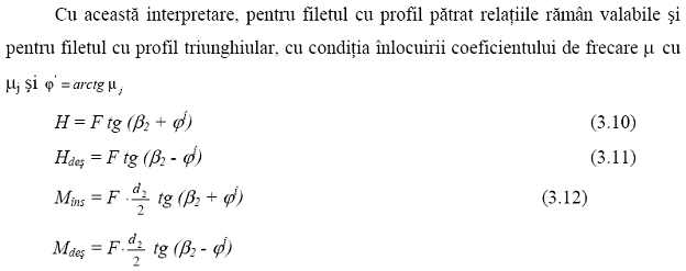 Pentru strângerea piulitei pe surub, trebuie învins un moment care pentru filetul patrat are expresia: