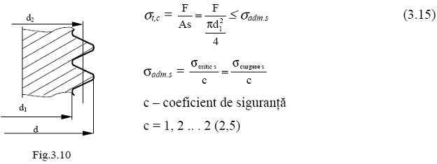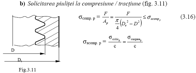 a) Solicitarea surubului la tractiune sau compresiune se raporteaza la sectiunea plina a surubului de diametru d1 (fig. 3.10). Marimea tensiunii axiale la tractiune sau compresiune :