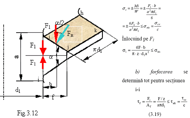 a) încovoierea se calculeaza deci pentru sectiunea i-i (considerând-o de forma dreptunghiulara) fig.3.12.