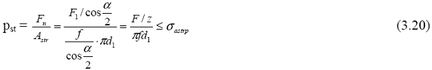 Experimental se constata ca deteriorarea prin forfecare poate fi neglijata. Se poate spune atunci ca solicitarile principale din filet sunt fi încovoierea si strivirea.