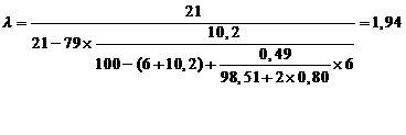 75,02x 53,4+10,50x 40,1)/100 = 54,13 kcal/Nm