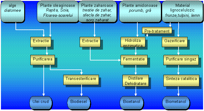 Fig.2. Diagrama obtinerii principalilor biocombustibili.