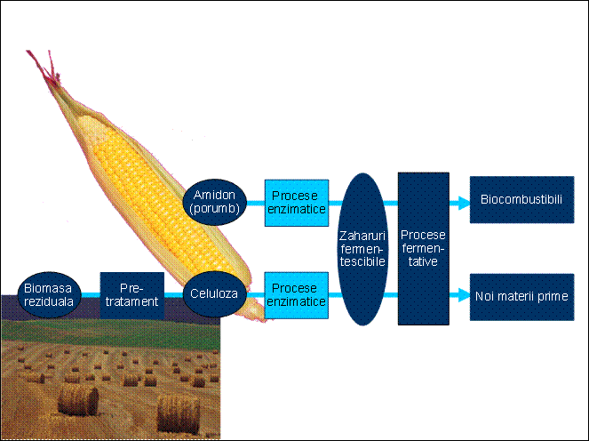 Fig. 3. Producerea de zaharuri fermentescibile si fermentarea lor prin hidroliza enzimatica.