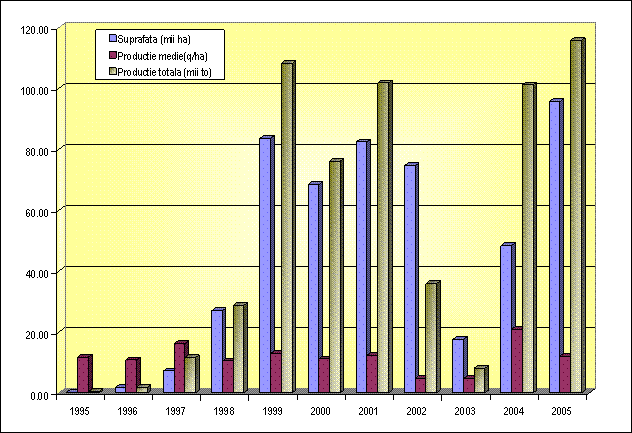Productia medie de samânta a crescut în perioada 1990-2000 de la 1368 la 1543 kg/ha pe plan mondial, de la 2779 la 2935 kg/ha în Europa si de la 916 la 1338 kg/ha în tara noastra.