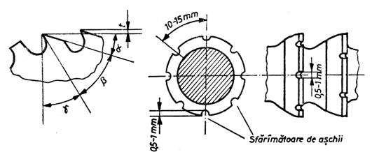 Pentru micsorarea latimii aschiilor si deci imbunatatirea conditiilor de aschiere, dintii de degrosare se prevad cu crestaturi sfaramatoare de aschii.