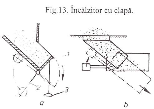 Inchizatorul cu clapa consta fie dintr-un capac plan oscilant/echilibrat de o contragreutate (fig.13, a), fie dintr-o portiune de jgheab (fig.13, b), care poate lua diferite pozitii injurul unui ax de rotatie, fiind, de asemenea, echilibrat de o contragreutate.