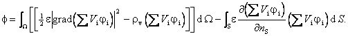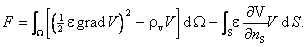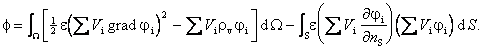 Se observa ca in functionala apare un termen asociat conditiei de frontiera de tip Neumann sau suprafetelor de discontinuitate, daca exista, iar valorile impuse ale potentialului intervin in calculul energiei de interactiune. Distributiile liniare de sarcina sau sarcinile punctiforme apar in functionala prin trecerea la limitain integrala termenului de interactiune, obtinandu-se termeni de forma