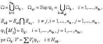 Domeniul W se considera o reuniune de subdomenii disjuncte Wk, cu k = 1,,nte, unde nte este numarul total de elemente finite folosite pentru descrierea problemei. De obicei nodurile sunt puncte apartinand frontierei intre elemente (desi se folosesc si noduri definite in interiorul elementelor), iar functiile de aproximare ji sunt asociate nodurilor. Suportul functiei ji este domeniul Wji construit prin reunirea elementelor finite ce contin nodul de indice ni asociat functiei. Se noteaza cu Eji multimea indicilor elementelor ce contin nodul ni (care formeaza domeniul Wji) si cu Ejij multimea indicilor elementelor ce contin atat nodul de indice ni, cat si nodul de indice nj (intersectia multimilor Eji si Ejj). Se mai noteazacu NWk multimea indicilor nodurilor aflate in domeniul Wk sau pe frontiera sa si cu Mi coordonatele nodului de indice ni (tripleta xi, yi, zi), iar cu ntn - numarul total de noduri. Acest numar are aceeasi valoare ca si numarul n, dimensiunea spatiului de aproximare.