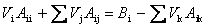 Problema se reduce la determinarea minimului fara restrictii al acestei functii de mai multe variabile. Pentru determinarea valorilor Vi se pune conditia necesara de minim, anularea derivatelor functiei f in raport cu componentele Vi ale lui V si se obtine un sistem de ecuatii algebrice, in cazul nostru chiar un sistem liniar